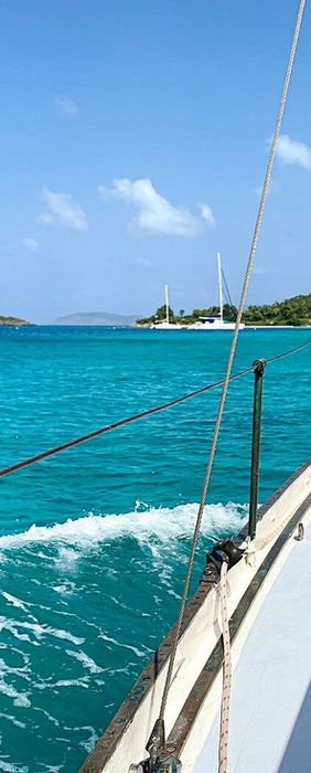 Cruising back to Red Hook, relax on board with plenty of shade enjoy the views of the outer islands on our scenic sail home. Catania is equipped with a marine head (restroom) for changing if needed.